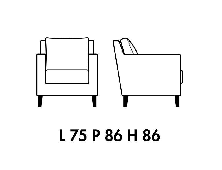 Poltrona dalle dimensioni contenute ma comoda, grazie al molleggio di cinghie elastiche e al cuscino schienale in piuma.