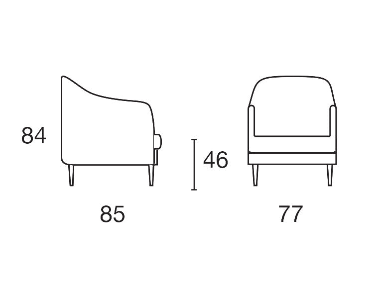 La poltrona imbottita e totalmente sfoderabile con piedi in metallo dallo stile moderno. Disponibile in tessuto.